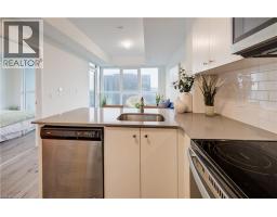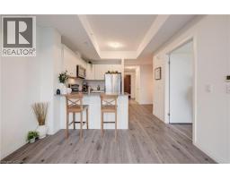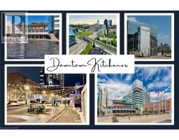 Exceptional 1-bedroom + den condo, 9' ceilings with 1 underground parking spot! Tower 3 of the Garment Street Condos, located in the heart of Kitchener’s Innovation District. This is upscale, low-maintenance urban living at its best, only steps to Downtown Kitchener, Victoria Park, shops, restaurants, transit, and the future LRT hub. Easy access to the GO Train, ION Light Rail, and major employers including Google, UW Health Sciences Campus, D2L, Deloitte, and The Tannery. Walk Score of 72, Transit Score of 63, and Bike Score of 85, this location is ideal for those who value walkability, cycling, and nearby trails, with Belmont Village close by. This building offers outstanding amenities including a resort-style salt water pool, fitness centre, yoga studio, sports court, theatre, entertainment room with kitchen, landscaped rooftop terrace with BBQs, pet run and wash, secure car and bike parking, and wireless internet throughout. Inside, the suite is filled with natural light from floor-to-ceiling windows and features a well-designed open-concept layout with high ceilings and engineered flooring. The modern kitchen includes contemporary cabinetry, granite countertops, stainless steel appliances, stylish backsplash, and a peninsula ideal for casual dining or entertaining. The spacious bedroom offers a wall-to-wall closet, and the unit is complete with a generous 4-piece wheelchair-accessible bathroom and convenient in-suite laundry. This well-managed building in an unbeatable central location, ideal for professionals, downsizers, or investors. Book your showing today! Walk Score 87 Transit Score 64 Biker's Score 85 (id:61594)