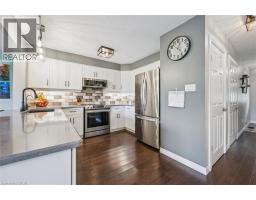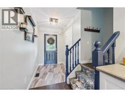 This cute townhome with a redesigned kitchen and open concept main floor is located in a wonderful North Fergus neighbourhood close to schools, shopping, trails and parks. Set on a deep lot backing onto farmland and surrounded by mature trees, this home offers a fabulous opportunity to build equity in a wonderful location. Inside, you will find an open, carpet free main floor with 2-piece bathroom, a newly updated kitchen, spacious dining area and a living area filled with natural light. The private backyard is perfect for outdoor enjoyment. Upstairs, you will find a very generous primary bedroom, two additional bedrooms, and a 4 piece bathroom. Downstairs, the basement has been partially finished including a 3-piece bathroom. This townhome offers comfort, convenience and incredible value in a fabulous neighbourhood. (id:61594)