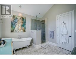 Welcome to 108 Hambly Ave., a custom-built detached home in one of King City's most coveted neighbourhoods, surrounded by other high-end luxury residences. This immaculate, turn-key property exudes elegance and pride-of-ownership at every turn. From the moment you arrive, you're greeted by the stucco and stone façade, charming covered front porch, and modern solid-wood front door. Inside, rich hardwood floors, LED pot lights, automated blinds and meticulous trim details elevate every space. The great room and dining room feature coffered tray ceilings with moulding, pot lights and decorative accent wall designs. The bright, open-concept kitchen is an entertainer's dream with a massive 9 ft x 5 ft centre island, dual undermount sinks, mini-wine fridge, under-cabinet lighting and generous counter space. A main floor office offers the perfect work-from-home setup, while the stunning oversized laundry room with walkout to the rear patio adds convenience and style. Upstairs, the primary suite impresses with a tall tray ceiling, walk-in closet, multiple windows and Juliette balcony. The grand 6-piece ensuite features a vaulted ceiling, freestanding soaker tub, dual vanities and a glass shower. The finished basement extends the living space with an electric fireplace, full bathroom, open-concept recreational area ideal for kids or gatherings and additional storage. Outside, lush landscaping frames the property with cedars, grasses, hedges, and flowers. The expansive rear deck spans the width of the home and includes a gas-line hookup. Outdoor cabana offers a covered patio, interior living room and 3-piece bath, perfect for outdoor entertaining. The garage has a separate electrical panel setup for future landscape/pool requirements.The driveway has been newly resealed, and the west-facing backyard bathes the home in natural light. This home is unique, well-crafted and a rare find-shows to absolute perfection! (id:61594)