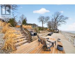 Welcome to 108 Lakeside Dr! Experience breathtaking Lake Erie vistas from an extraordinary 80-ft concrete waterfront patio (2022), raised 8ft+ above the water's edge cement pad, accessed by mechanized steel stairs (2022) for easy access to the sand/pebble beach. Perfect for launching kayaks or dipping toes. Relax beneath the pergola, enjoy the elevated lookouts, or take one of two precast stone stairs (Permacon 2024) to the upper level's 14 x 24 composite deck. The panorama is unforgettable! Overlooking this spectacular waterfront is a tastefully renovated, year-round home set proudly on a double lot landscaped with low upkeep perennials for all-season interest. The main level offers 1429sf of beautifully presented living space, highlighted by a sun-filled glass solarium and impressive living/dining room combo. On cool evenings light the gas FP highlighted in a stone feature wall while waves lap the shoreline. The sizeable primary bedroom captures soothing lake views and features a chicly renovated 3-pc ensuite (2026) and wall-to-wall closets. Gorgeous "distressed" engineered hardwood flooring (bedroom 2021) compliments the inviting décor throughout. The well-appointed kitchen enjoys an abundant cabinetry & small pantry, flowing naturally toward a second renovated 3-pc bath (2026). A comfortable family room-formerly 2nd bedroom-adds flex (TV room, office, guest space). The functional 636sf lower level (8-ft clgs) offers a tastefully finished bedroom (2023), laundry station, storage, mechanicals, and workshop area. Additional Features: 14 kW generator (2025) Metal roof (2019) Wood fence/gates (2024) 6k gallon cistern Septic Sys w tile bed Access to seasonal community water Fibre high speed Detached 12' x 16' shed Updated windows Natural gas furnace & A/C (2013) Located in Peacock Point- along Lake Erie's Golden South Coast - close to beaches, Hoover's Marina & E of Pt. Dover's amenities - 50 min to Brantford/Hamilton. Let's get to "The Point!" (id:61594)
