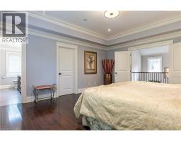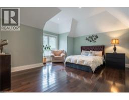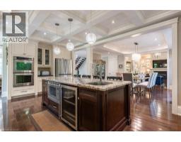 This distinguished custom-built two-storey residence offers over 5,600 square feet of refined living space, including approximately 3,700 square feet above grade and nearly 2,000 square feet in a luxuriously finished lower level nestled within a prestigious Bronte East enclave. Step through the double entry doors into an impressive two-storey foyer crowned by soaring 20-foot ceilings and an open gallery overlook. Expansive transom windows bathe the space in natural light, highlighting the floating hardwood staircase with wrought-iron railings. The main level unfolds with an open-concept layout featuring hardwood floors, vaulted and recessed ceilings, French doors, custom millwork, and oversized picture windows that fill each room with light. The family room serves as a true architectural centerpiece with its 14-foot vaulted ceiling and floor-to-ceiling fireplace, while six additional rooms offer the flexibility to tailor each space to your lifestyle. The Chef’s kitchen blends form and function with custom cabinetry, premium built-in appliances, and an expansive centre island ideal for both cooking and entertaining. The upper level hosts four spacious bedrooms, including a primary suite overlooking the rear and side gardens. This retreat features a spa-inspired five-piece ensuite complete with a floor-to-ceiling glass shower and whirlpool-style jetted tub. Two of the secondary bedrooms boast graceful, vaulted ceilings, adding a sense of airiness and architectural character. Mature trees and lush greenery envelop the property, creating serene views from every window. The professionally finished lower level extends the home’s luxurious living space, offering a recreation room, theatre room or fifth bedroom, home office, above-grade windows, and a three-piece bath. Outside, the manicured backyard oasis features a gazebo and flower garden, providing a tranquil setting for relaxation or entertaining. A true beauty that you can not miss. (id:61594)
