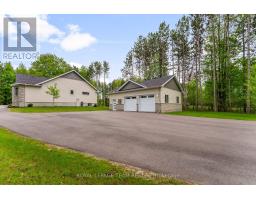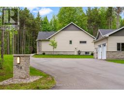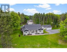 Welcome to this CUSTOM-finished, show-stopping BUNGALOW where luxury and lifestyle collide on a pristine 1-ACRE lot, just steps from the prestigious Eagle Creek Golf Club in beautiful Dunrobin - just 35 minutes from downtown Ottawa and 20 from Kanata. From the moment you arrive, you are greeted by the OVERSIZED DRIVEWAY and detached 2-car garage with a heated workshop. Inside the home, premium oak engineered hardwood and sleek marble-gloss tiles guide you through an OPEN-CONCEPT masterpiece. The kitchen is a chefs dream, featuring custom cabinetry with built-in lighting, a MASSIVE island perfect for gathering, a pot filler faucet for added convenience, and high-end stainless steel appliances. The dining area shines with a built-in hutch & bold ACCENT wall, while the living room stuns with CATHEDRAL ceilings, seamlessly flowing to a screened-in porch, ideal for entertaining or watching the game. Step onto the oversized COMPOSITE DECK, soak in the HOT TUB, and embrace outdoor living like never before. The main-level primary suite is a retreat of its own, boasting a SPA-INSPIRED 5-piece ensuite with heated marble flooring, a glass stand-up shower, a luxurious soaker tub, DUAL SINKS, and a walk-in closet. Another spacious bedroom and full bath complete this level. And yes, there is even your very own indoor GOLF SIMULATOR room. Practice year-round, rain or shine on this state of the art system. Downstairs, luxurious comfort continues - enjoy a FULLY FINISHED rec room with two distinct living areas, a dedicated exercise room, a third bedroom, and a full bath. This isn't just a home, it's a lifestyle - and it's waiting for you. Every detail found at this property has been meticulously designed and thoughtfully crafted from doors & hardware to lighting, flooring, paint and cabinetry. 12 hour irrevocable on all offers. (id:61594)