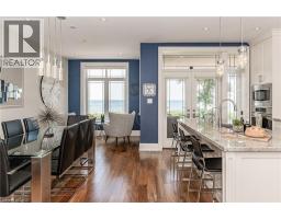 Experience waterfront living in this beautifully appointed 3-bed, 4-bath executive freehold townhome, over 3000 sq ft of thoughtfully designed living space. As a desirable end unit, it provides additional privacy, more windows for natural light, direct backyard access, and the convenience of a full two-car driveway. Enjoy stunning east-facing lake views and breathtaking sunrises from multiple vantage points, including three oversized terraces. The open-concept layout features soaring ceilings and a spacious, upgraded kitchen with an expansive island and premium stainless steel appliances, ideal for entertaining. Designed with comfort and durability in mind, this home includes 8” reinforced concrete construction through the centre for added sound separation and structural integrity. Take in uninterrupted lake views from nearly every room and enjoy direct access to the waterfront lifestyle—launch your kayak from the garage, stroll the boardwalk, or cycle along the lake to Spencer Smith Park and beyond. Ideally located steps to the beach and just minutes from downtown Burlington, with quick access to Toronto and Niagara via major highways. A rare opportunity to enjoy low-maintenance luxury living by the water. (id:61594)