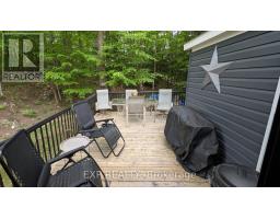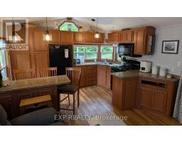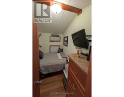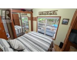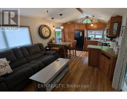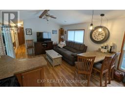 Peace, Tranquility, and Relaxation await. Welcome to your new 3-season home located in Shamrock Bay Resort. The resort is open May 1st to October 31st, and has all of the summer amenities you could ask for. This well maintained, open concept modular home is situated on the perfect lot for someone wanting privacy within nature. Your neighbour is the forest. Enter into a 3 year old sunroom (20' x 10'), allowing ample space to enjoy the outdoors from inside. Inside you will find a front facing kitchen with ample cupboard storage and an eat-in bar with stools. Opening up to the living room before walking down the hall to the guest bedroom, 3-piece bathroom, and master bedroom at the back. The master is complete with built in storage, including an office area, and a large window facing the back of the lot to enjoy more of natures beauty. Outside you find a large deck (16' x 10') for entertaining, a firepit for those cozy summer nights, and a beautifully maintained garden along the forest edge. Just down the road into the community you find a community room, inground pool, sports court, and playground. In addition there is a small library and apay per use laundry facility and a beach along the river. Have a boat? There is a boat launch area and a marina (check with the resort on availability and costs). This resort is conveniently located just off Hwy 11, but far enough that you can lose yourself in the joys of cottage living. Annual fees ($8115 in 2024) cover hydro, water, sewer, garbage collection, outside maintenance, community living maintenance and property taxes. (id:61594)
