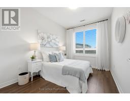 Welcome to this beautifully maintained 2 bedroom, 2 bath condo offering 1122 sq ft of bright, comfortable living in Milton's sought after Scott neighbourhood. This main floor unit features a functional open concept layout with laminate flooring throughout, spacious principal rooms, and a warm, inviting feel from the moment you walk in. The kitchen offers plenty of cabinetry, stainless steel appliances, and a large breakfast bar overlooking the living and dining area, making it perfect for both everyday living and entertaining. The living room opens to a private balcony with a lovely southern exposure, bringing in natural light and offering a peaceful outdoor space to relax. The generous primary bedroom includes a 3 piece ensuite and ample closet space, while the second bedroom is ideal for guests, family, or a home office. A full second bathroom adds extra convenience. This unit also includes 1 underground parking space and 1 locker for additional storage. Well kept building amenities include a party room and exercise room. Located in a desirable area just walking distance to Downtown, parks, trails, schools, shopping, transit, and everyday amenities, this is a fantastic opportunity for downsizers, first time buyers, or anyone looking for low maintenance living in a great Milton location. (id:61594)