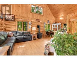 Welcome to 109 Scharf Lane a charming, custom built cedar log home with exposed posts and beams situated on just under 4 private acres, only minutes from the village of Calabogie. Located on a quiet, year-round maintained road, this property offers the perfect blend of privacy, comfort, and convenience. Step inside to an open-concept main floor featuring a bright eat-in kitchen, a formal dining area, and a cozy living room warmed by a gas fireplace and opened up by vaulted ceilings. The main floor also features a full bath equipped with laundry. A central curved stairway leads you to the primary suite, complete with bedroom and ensuite bath, creating a peaceful retreat. The finished walkout basement expands your living space with a second bedroom, a welcoming family room highlighted by an airtight woodstove, and plenty of storage options. Enjoy the convenience of never running out of power with a back-up Generac Propane Generator. Outdoors, enjoy both a covered front porch and a screened-in porch, ideal for relaxing and taking in the natural surroundings. Whether it's morning coffee, evening gatherings, or simply unwinding and enjoying evening sunsets, the outdoor living spaces enhance the charm of this log home. Perfect for year-round amenities, this home places you less than 15 minutes from Calabogie Peaks Ski Resort and Highlands Golf Course, with many lakes and rivers offering public access nearby, including Bagot Long Lake, only a 5 minute walk to the boat launch. Just 10 minutes into the village and an hour to Ottawa's west end, the location combines country tranquility with easy access to amenities. Winter road maintenance is private for Scharf Lane and costs $1,000 annually, this includes plowing of laneway and parking area of the home. (id:61594)