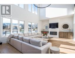 This designer executive home offers over 3,000 sq.ft. of modern, open-concept living with panoramic mountain views in one of Blue Mountain's most sought-after communities. Featuring over $400,000 in upgrades, the home showcases 10' ceilings on the main floor and 9' ceilings on the second floor, along with wide plank hardwood floors throughout. The chef's kitchen includes Thermador built in appliances, quartz countertops, an oversized island, and a bar fridge. The expansive great room with a gas fireplace and floor-to-ceiling windows provides an inviting space to relax and entertain. Four spacious bedrooms each have private ensuites, including a primary suite with a double glass-framed shower, deep soaker tub, and heated floors. Additional highlights include motorized blinds, a full laundry room with an LG front-load washer and dryer, a private backyard with an expansive deck, and parking for up to six vehicles. Just minutes from the Village, ski lifts, shops, restaurants, and trails, this home combines modern elegance with the ultimate Blue Mountain lifestyle (id:61594)