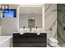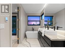 Step inside 1090 Ella Avenue and experience modern living at its finest in a custom-built home, designed for everyday comfort. Thoughtfully planned, this residence blends elegant design with premium finishes to create a space that is both stylish and functional. The exterior combines brick, metal panels, wood siding, and stucco, offering a glimpse of the architectural elegance carried throughout the interior. Inside, an open-concept layout is enhanced by 10-foot ceilings on the main floor, hardwood flooring throughout, and an open-tread staircase with sleek glass railings. At the heart of the home is a chef's kitchen featuring Italian hand-painted cabinets, an oversized island, exquisite countertops and backsplash, and top-of-the-line Dacor appliances. The kitchen flows seamlessly into the living room, where floor-to-ceiling windows, a gas fireplace, and a walk-out to the deck create a perfect space for entertaining or relaxing. Upstairs, you'll find three spacious bedrooms, including a stunning primary suite with a private balcony, a custom walk-in closet, heated flooring, and a spa-like 5-piece ensuite with a freestanding tub, double sinks, and a rainfall walk-in shower. The finished basement adds even more living space with a recreation room, den, heated flooring, ample storage, and a convenient walkout. Three luxurious bathrooms showcase expansive tile slabs, elegant vanities, and a clean, sophisticated design. Additional features include an automatic front door with fingerprint entry, automated window shades throughout, 9-foot ceilings on the upper and lower levels, and energy efficient aluminum European lift-and-slide windows built to last decades. Located in the desirable Lakeview community, this home is just minutes from Lake Ontario's waterfront, schools, parks, trails, and a community center, and provides quick access to the QEW. Elegant, stylish, and built for comfort - 1090 Ella Avenue is a modern masterpiece that truly has it all. (id:61594)