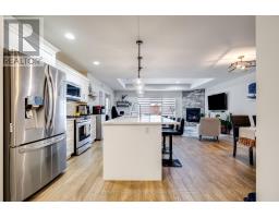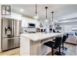 Driving to this home, you quickly see why this is such a desirable place to live. Wide roads, grassy boulevards throughout the neighbourhood, & parks within a 10-minute walk in multiple directions. Pulling up, you'll notice the double concrete driveway and strong curb appeal. Covered front porch with upgraded screen door & transom window in entry door. Upon entering, a glance out the back window confirms this is a premium location unit. Extremely well maintained with evident pride of ownership throughout. Kitchen has oversized quartz island with extensive storage under the bar seating soft-close drawers & cupboards. Updated LG ThinQ smart fridge with ice and water, gas stove, upgraded deep one-piece stainless steel sink, and Bosch stainless dishwasher. Living room with 9' ceilings offers an exceptional view, reinforcing the premium positioning. Napoleon gas fireplace with stone surround. Three-panel sliding doors provide abundant natural light & lead to a covered concrete patio with ceiling fan. West-facing exposure perfect for sunsets. Privacy wall to the east side. Primary bedroom with double French doors comfortably fits a king bed. Primary ensuite features soft-close cabinetry with double sinks walk in shower with glass sitting on a marble base and deep soaker tub. Massive walk-in closet. Front bedroom is generously sized with cheater ensuite bath, ideal for guest room or office. Laundry area includes upper cabinetry & folding counter. LG ThinQ washer and dryer included. Lower level offers substantial storage and future development potential, including rough-in bath. Living room and bedrooms equipped with data wiring, coaxial, and power for wall-mounted TVs.Hardwood floors, thoughtful upgrades, exceptional condition, and premium location make this a must-see. Easy living with the snow removal and lawn maintenance done for you. Freehold ownership with low monthly fee covers snow removal and lawn cutting. It even has a reserve for new shingles down the road. (id:61594)