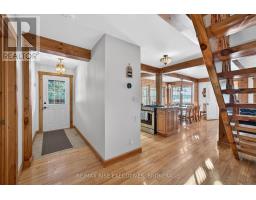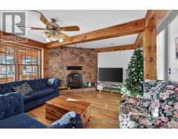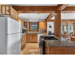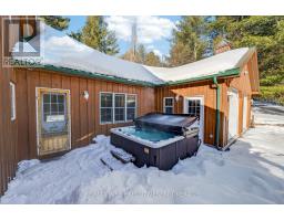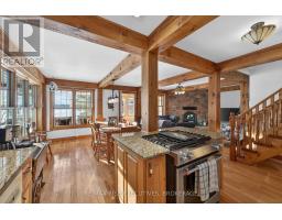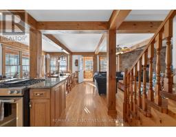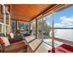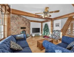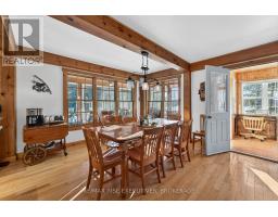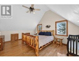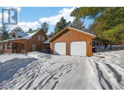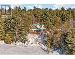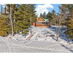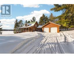1093B Two Loon Lane - O'Reilly Lake. Welcome to pure paradise. Tucked away on a quiet, well-maintained year-round road, this custom-built 4-bedroom lakefront home offers unmatched privacy with 9 acres of seclusion and an incredible 528 feet of pristine shoreline on peaceful O'Reilly Lake-where gas motors are prohibited, ensuring calm waters and a true escape. Warmth and character fill the home, highlighted by pine beams, ash hardwood floors, and a thoughtfully designed layout. The main floor features a convenient bedroom with direct access to the attached garage and hot tub, along with a 3-piece bathroom-ideal for main-level living or guests. Upstairs, you'll find three additional bedrooms, including a spacious primary bedroom, and a beautiful main bath complete with soaker tub and separate shower. The heart of the home is a welcoming kitchen with granite island, flowing seamlessly into an enclosed, year-round wraparound porch that's both heated and cooled-perfect for enjoying the lake views in every season. A massive 25' x 23' attached garage provides plenty of room for vehicles, toys, and storage. Outside, the property truly shines with a finished, heated bunkie ideal for guests or a games room, multiple outbuildings, and your own private boat launch. Whether you're swimming, paddling, or simply soaking in the quiet, this is lakefront living at its finest. Currently operated as a successful and lucrative Airbnb, this property offers the next owner the option to continue generating strong rental income, or simply enjoy it as a private family retreat. Offered fully furnished, including all furniture, dishware, canoe, kayak, hot tub, and more, this is a true turn-key waterfront opportunity. A rare combination of privacy, lifestyle, and income potential-once you arrive, you may never want to leave. (id:61594)