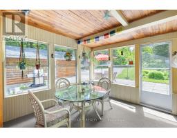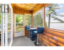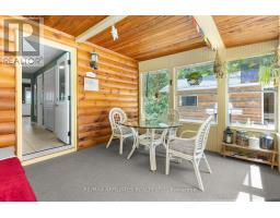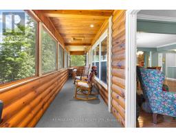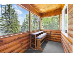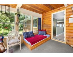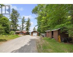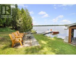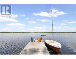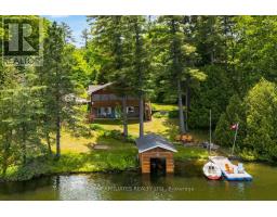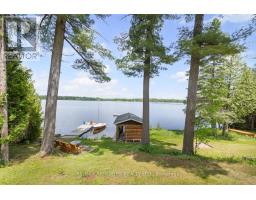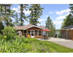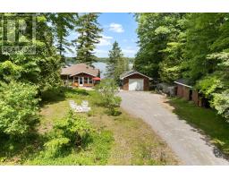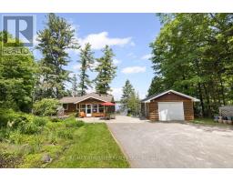 "Time is but the stream I go a-fishing in." - Thoreau may not have cast his line in White Lake, but he'd certainly approve of the peaceful rhythm at Three Mile Bay. Tucked into the quieter, more private side of the lake, this year-round 1+2 bedroom log bungalow offers 190 feet of owned shoreline on nearly an acre of land - a rare and coveted feature. The home, detached garage/workshop, and boathouse all share a rustic log exterior that blends beautifully into the treed landscape. The main floor features an open-concept layout with built-in bookshelves (complete with built-in lighting for your late-night lake reads), two full baths, a screened porch overlooking the gardens and another looking out onto the waterfront. Downstairs, a mostly finished walkout basement with propane fireplace and two more bedrooms make hosting family and friends easy. Outside, a gentle slope leads to the waterfront, dock, boat house and swim raft. Horseshoe pits, a fire pit, and both front and back screened porches give you four-season options for entertaining, relaxing, or simply listening to loon calls at dusk, especially when it's your turn to bring the smores. The detached log garage includes a separate workshop, plus there are additional storage outbuildings for all your hobbies. Gas BBQ hookup, high-speed internet, and a municipally maintained road mean comfort doesn't take a backseat to charm. Crown land on the other side of the road with extensive trails for skiing, hiking or bird watching - explore nature in all 4 seasons. Plus in winter, the gentle slope of the property makes for a perfect sledding hill that goes right out onto the frozen lake! Whether you're a boater, gardener, star-gazer, or all of the above, this is the kind of place where time slows down - and stays that way. (id:61594)
