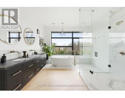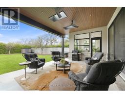 Tucked away on a quiet cul-de-sac in one of Oakville's most sought-after neighbourhoods, this custom-built (2018) home sits on a rare 66 x 188 ft lot, offering exceptional depth and privacy. With over 4,000 sq. ft. above grade, the residence showcases quality craftsmanship and thoughtful design throughout.The striking exterior blends natural stone, stucco, and modern wood-look aluminum cladding. Expansive, sound-reducing windows fill the home with natural light. A double garage with tandem space and an extended driveway accommodates up to six vehicles. The professionally landscaped, fully fenced backyard is framed by mature cedar hedging and features a 400 sq. ft. covered outdoor living area with 11-ft ceilings, skylights, built-in TV, and wood-burning fireplace. Oversized 9-ft sliding glass doors create seamless indoor-outdoor living.Inside, 10-ft ceilings on the main and second levels, hardwood flooring, and well-proportioned principal rooms define the space. Formal living and dining rooms, a private office, and a spacious family room with gas fireplace offer comfort and functionality. The custom kitchen features an oversized island and premium Dacor appliances, ideal for everyday living and entertaining.Upstairs offers four generous bedrooms. The primary suite includes a fireplace, sitting area, and a custom walk-in dressing room with built-in sink, mini fridge, and coffee bar. The spa-inspired ensuite features a glass shower, soaker tub, and double vanity. Three additional bedrooms and two full baths complete the level.The unspoiled lower level offers approx. 3,000 sq. ft. with 9-ft ceilings, heated floors, and a walkout-ready to customize.A rare opportunity to own a newer custom home on an oversized lot in prime Oakville. (id:61594)