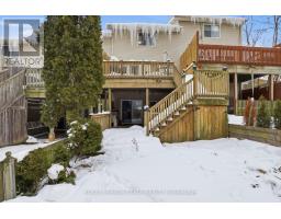 3+1 bedrooms freehold townhouse with walkout basement onto a two-tier deck. No Condo Fees. Ceramic tile in front hallway with storage closet and 2 pc bathroom. Recently installed hardwood floor throughout home (Basement to 2nd floor). Updated kitchen with granite countertops. Large open concept living/dining room with patio doors to a private two-tier deck. Deck has staircase down to backyard with patio doors leading into finished basement. Three large bedrooms. Master bedroom with his and her walk in closets and ensuite privileges - 4pc bath with Jacuzzi tub, stand up shower and an amazing skylight. Second skylight in hallway of second level. Fully finished basement features newly installed flooring throughout. Large recreation room with corner gas fireplace, 3 pc bathroom and an additional huge bedroom. Backyard features 6ft x 8 ft shed and newer fencing. Private two car driveway and attached one car garage with interior access. Very quiet secluded area. Away from the hustle and bustle of every day traffic. Please allow overnight notice for showings. (id:61594)