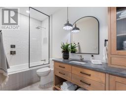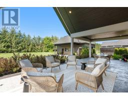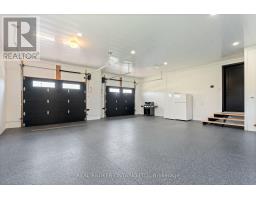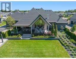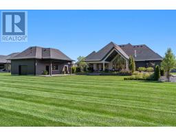 Welcome to 11 August, a refined blend of elegance, comfort, and thoughtful design nestled in one of the areas most sought-after communities. This exceptional bungalow is a true retreat where architectural sophistication and curated landscaping create an inviting sanctuary you'll be proud to call home. Step inside and be captivated by the grand living room, where vaulted ceilings and a dramatic wall of windows flood the space with natural light and frame breathtaking views of the lush, ever-changing scenery. Striking black and white contrasts throughout the home lend an air of contemporary sophistication, with the living rooms sleek fireplace serving as a bold yet cozy centerpiece. At the heart of the home is a sun-drenched double island kitchen a dream for both everyday living and entertaining. Abundant windows invite the outdoors in, making every culinary moment feel inspiring and connected to nature. The primary suite is a serene escape, featuring a spa-inspired ensuite with a freestanding tub, dual-head walk-in shower, and elegant modern finishes. The fully finished lower level expands your lifestyle possibilities with a dedicated media zone, an additional bedroom for guests, and a beautifully outfitted home gym complete with glass double doors and a full bath for post-workout convenience. For hobbyists and outdoor enthusiasts, the property boasts a massive detached garage in addition to the double attached garage. With front and rear overhead doors, its perfectly equipped to house your vehicles, recreational gear, and workshop needs. Step outside to your covered back patio, complete with a vaulted ceiling and pot lighting perfect for morning coffee or hosting unforgettable evenings under the stars. (id:61594)