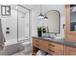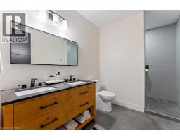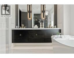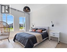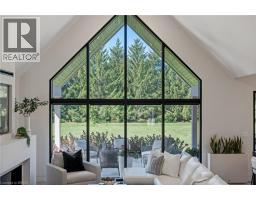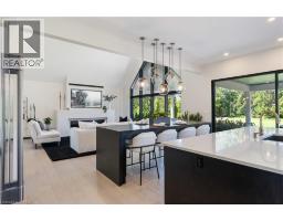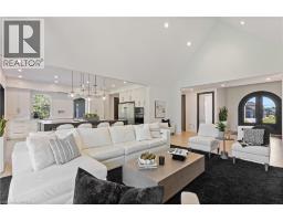 Welcome to 11 August, a refined blend of elegance, comfort, and thoughtful design nestled in one of the area’s most sought-after communities. This exceptional bungalow is a true retreat—where architectural sophistication and curated landscaping create an inviting sanctuary you’ll be proud to call home. Step inside and be captivated by the grand living room, where vaulted ceilings and a dramatic wall of windows flood the space with natural light and frame breathtaking views of the lush, ever-changing scenery. Striking black and white contrasts throughout the home lend an air of contemporary sophistication, with the living room’s sleek fireplace serving as a bold yet cozy centerpiece. At the heart of the home is a sun-drenched double island kitchen—a dream for both everyday living and entertaining. Abundant windows invite the outdoors in, making every culinary moment feel inspiring and connected to nature. The primary suite is a serene escape, featuring a spa-inspired ensuite with a freestanding tub, dual-head walk-in shower, and elegant modern finishes. The fully finished lower level expands your lifestyle possibilities with a dedicated media zone, an additional bedroom for guests, and a beautifully outfitted home gym complete with glass double doors and a full bath for post-workout convenience. For hobbyists and outdoor enthusiasts, the property boasts a massive detached garage in addition to the double attached garage. With front and rear overhead doors, it’s perfectly equipped to house your vehicles, recreational gear, and workshop needs. Step outside to your covered back patio, complete with a vaulted ceiling and pot lighting—perfect for morning coffee or hosting unforgettable evenings under the stars. (id:61594)