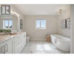 Situated on a premium corner lot backing onto a scenic pond with walking trails, 11 Bowman Drive is a custom-built Ilderton home that raises the bar for what move-in-ready looks like. Over 3,600 square feet of finished living space across three levels, five bedrooms plus a main-floor office, five bathrooms, and a three-car garage - this is the kind of home most buyers design in their head but rarely find on the market. The main floor is bright, open, and thoughtfully laid out. A French double-door entry with tile foyer sets the tone. The living room delivers with soaring cathedral ceilings, a modern linear fireplace, and floor-to-ceiling windows that pull in natural light and unobstructed views of the pond. The kitchen matches the scale - granite countertops, built-in KitchenAid appliances including a gas cooktop and wall-mounted oven, a large centre island with seating, a custom pantry, and a dedicated coffee bar. A generous dining room, mudroom, and main-floor office complete the level. Step out to a spacious 16x20 deck with gas barbecue hookup overlooking the pond and walking trails - a setting that feels more like cottage country than subdivision. Upstairs features four bedrooms and three full bathrooms. The primary suite is a true retreat - five-piece ensuite with freestanding soaker tub, glass shower, double vanity, and linen closet. A fourth bedroom has its own dedicated ensuite, while two additional bedrooms share a Jack-and-Jill bath, upper-floor laundry with upgraded sink and gas-ready dryer hookup. The finished basement offers 12-foot ceilings, a dedicated theatre room with projector and screen, a fifth bedroom, a full bathroom, and plenty of storage. Remote-controlled blinds throughout the main floor and basement. Turnkey on one of Ilderton's best lots. (id:61594)