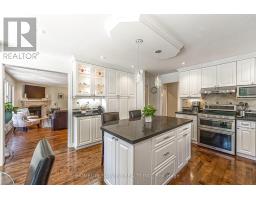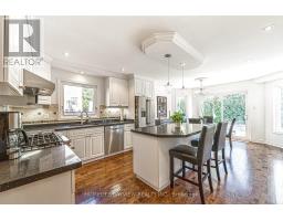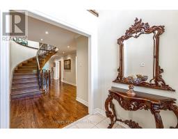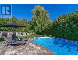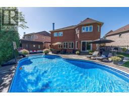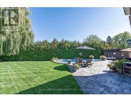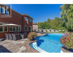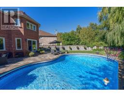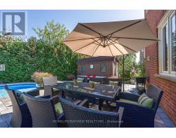 Luxury 4000 sqft on 2 floors plus a finished basement apartment with separate entrance and separate laundry for a total of aprox 5700 sqft of living space sitting on a huge pie shaped lot on a quiet court, cul de sac child safe location, with a huge private treed backyard featuring an inground swimming pool. This home features 5+2 bedrooms, 5 bathrooms, 2 kitchens, 2 laundry rooms, long interlocking 5 car driveway with no sidewalk, hardwood floors throughout, skylight, main floor office, huge family room overlooking the pool, large eat in kitchen with central island, combined liv/din rooms for entertaining, main floor laundry with direct access to the garage, circular oak stairs open to basement, oversized primary bedroom retreat with his and hers walk in closets and a well appointed ensuite bathroom with deep tub and separate shower. The basement features a large recroom and a fully self contained 2 bedroom unit with a full kitchen, own laundry, walk-up separate entrance and a secondary electrical panel. steps to transit, school, park and ravines. minutes to highway 404 and more. (id:61594)