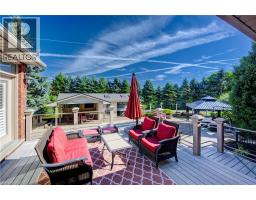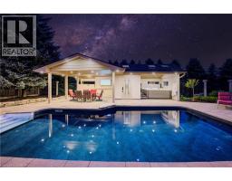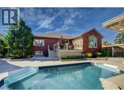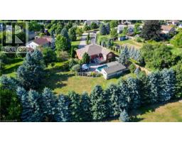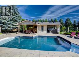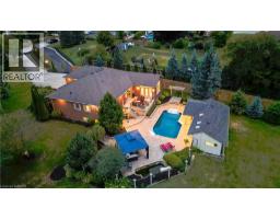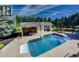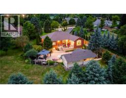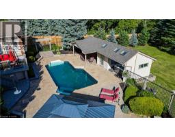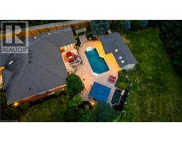 The dream; just on the outside of town, away from the hustle but close to all amenities. Nestled deep from the road on a quiet cul de sac, the large .75 acre, private, pie shaped lot is surrounded by majestic spruce trees. With a northern resort-styled backyard, complete with saltwater pool , sun all day from the southern exposure, multiple seating areas, outdoor TV and a fishpond, this can be your home, cottage and vacation all in one. The house is a beautifully finished bungalow with large windows and skylights that flood the space with sunlight and views of lush greenery from every window. The excellent open concept floorplan features large principal rooms with 9ft ceilings. A massive 47 foot long recroom is the centrepiece of an amazing lower level. Large windows, a bathroom and three additional rooms, the basement has unlimited potential and can comfortably accommodate a growing family or multi-generational living. Just minutes from the expressway and all amenities on Ira Needles, easy access to Kitchener or Waterloo with school bus routes and public transportation close by. The sum of all the parts makes this home a rare find and an amazing value that must be seen! Escape the hustle and enjoy the lifestyle. (id:61594)