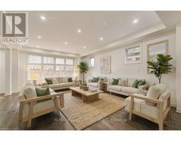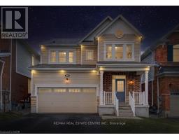 Welcome to 11 Compass Trail, a beautifully upgraded detached home offering exceptional interior finishes and a thoughtfully designed layout for modern living. The bright open-concept main floor features spacious living and dining areas, 9-foot ceilings, hardwood flooring, interior and exterior pot lights, and a convenient 2 piece bathroom. The upgraded chef's kitchen is complemented by a walk-in pantry, ideal for everyday living and entertaining. Elegant wood stairs with iron railings lead to the second level, where you'll find four generously sized bedrooms and two well-appointed bathrooms with cultured marble counters. The primary bedroom retreat boasts a luxurious ensuite and multiple walk-in closets. Situated on a premium 36 x 108 ft lot, this home features a fully fenced backyard, double car garage, and parking for four vehicles. Enjoy a rare setting fronting onto protected green space with a flowing river stream, scenic views, nearby pond, nature trails, and parks, all while being ideally located in a prime Cambridge neighborhood close to major amenities and highways. A perfect blend of luxury, nature, and convenience. The home is freshly painted and ready to move in, book your showing today! (id:61594)