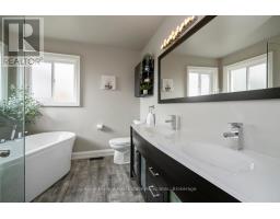 Welcome to this beautifully maintained 4 + 1 bedroom 2-storey home, offering approximately 2,400 sq ft plus a fully finished basement. Built in 1991, this property blends timeless design with thoughtful updates throughout. Engineered hardwood flooring spans the main and second levels, while the heart of the home - a stunning peninsula kitchen - features granite counters, custom cabinetry and counter seating on both ends, along with a sleek cooktop, built-in oven, microwave and built-in beverage fridge with wine bottle storage. The spacious primary bedroom includes a walk-in closet and a spa-like 5-piece ensuite with a freestanding tub and glass-enclosed shower. The finished basement adds even more living space with a large rec room, vinyl flooring, second gas fireplace, an extra bedroom, office space and a 3-piece bathroom. Outside, enjoy a private, landscaped backyard with a spacious deck, gas BBQ hook-up, shaded gazebo, lounge area, mature trees and decorative stonework - perfect for relaxing or entertaining. Additional highlights include a double driveway with parking for two, a 2-car garage and close proximity to schools, hospital, shopping, restaurants, GO train, recreation centres, parks and scenic walking paths along the ravine. What our sellers love most about this location: a quiet street lined with mature trees and double-sided sidewalks - ideal for peaceful strolls and a strong sense of community. (id:61594)
