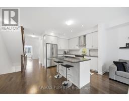 Rarely offered luxurious showstopper end-unit townhouse (feels like a semi) with no monthly fees (freehold), one of the largest models offering approximately 2,378 sq ft (as per floor plan) plus an unfinished basement, ideally situated on a quiet, family-friendly street facing a beautiful park with unobstructed views. Proudly owned by the original owner, this home reflects true pride of ownership and has been meticulously maintained throughout. Featuring a modern exterior with a sleek glass garage door and loaded with upgrades, this move-in ready home boasts high smooth ceilings, 4 spacious bedrooms and 4 bathrooms, including a convenient ground-level bedroom with a 3-piece bath, perfect for guests or extended family. The main floor also includes a private office with pocket doors. Enjoy a modern open-concept layout with extensive tasteful upgrades, including a large center island, pantry cabinetry, and stainless steel appliances. The functional floor plan is complemented by upgraded hardwood floors throughout, generously sized bedrooms, convenient upper floor laundry, and a luxurious primary suite featuring a large walk-in closet with custom organizers, a glass shower, and a freestanding soaker tub. Additional features include a sprinkler system, upgraded garage floors, and ample outdoor space with multiple balconies and a walkout to a backyard deck, perfect for relaxing & entertaining. Located in an excellent central area in the heart of Maple close to all amenities, just minutes from Maple GO Station, Walmart, shops, parks, and the library, this is truly a must-see home. (id:61594)
