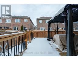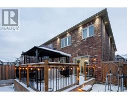 This absolutely gorgeous end-unit townhome offers over 2000 sq ft of beautifully finished living space and truly feels like a semi-detached, featuring a striking stone-and-brick exterior, exterior pot lights and a grand double-door entrance that makes an unforgettable first impression. The main floor is bright and inviting with laminate flooring, pot lights and both a separate living room and family room-perfect for families who want privacy and extra space. The stunning modern kitchen steals the show with high-end quartz countertops, a stylish backsplash, stainless steel appliances, glossy white cabinets and a functional island that adds both charm and convenience. The cozy family room is designed for comfort with a custom TV wall and added storage, while elegant wainscotting and upgraded oak stairs with iron spindles lead you to the second level, where you'll find four spacious bedrooms, two full bathrooms and a dedicated laundry room. The finished basement adds incredible value, ideal as an in-law suite or future rental potential, giving first-time buyers room to grow. The maintenance-free backyard with a massive deck and beautiful gazebo creates the perfect outdoor retreat. This home is truly a rare find-stylish, spacious and absolutely perfect for first-time buyers looking for comfort, luxury and long-term value. (id:61594)