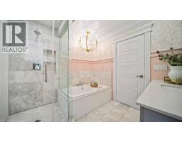 Welcome to this stunningly renovated 4+1 bedroom, 5-bathroom residence offering over 3,000 sq. ft. above grade, complemented by a fully finished basement. Every detail has been thoughtfully curated, beginning with the striking stone exterior and professionally landscaped grounds, complete with a concrete driveway. Step through the double doors into an expansive open-concept main level adorned with rich hardwood floors, timeless wainscoting, and elegant coffered ceilings. The formal dining room flows seamlessly into a grand family room and a chef-inspired kitchen featuring premium appliances, quartz countertops, and a convenient butler’s pantry with a secondary fridge. Ascend the wrought iron staircase to the second floor, where you’ll find three spacious bedrooms, three full bathrooms, and a practical laundry room. A cantilever balcony at the end of the hallway adds a touch of Parisian charm. The third level is dedicated to the luxurious primary suite, complete with a spa-like ensuite and a custom-designed walk-in closet with built-in cabinetry—truly a dream retreat. Just outside the suite, a versatile bonus space awaits, ideal for a home office, nursery, or reading nook. The fully finished basement is designed for relaxation and wellness, featuring luxury vinyl plank flooring, a cozy recreation area, a fully equipped sauna, and a gym. The tandem garage comfortably accommodates two vehicles, with soaring ceilings that allow for the future addition of a car lift. Perfectly located near schools, shopping, recreational facilities, dog parks, Valley Park, and major highways, this exceptional home combines luxury, comfort, and convenience. (id:61594)