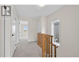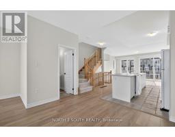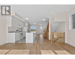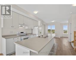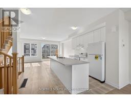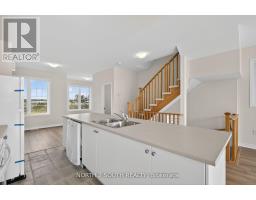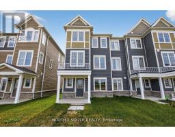 A stunning brand-new executive townhome offering nearly 1,800 sq. ft. of modern living across 3 levels. This 3-bedroom, 4-bath home features a bright open-concept main floor with 9 ft ceilings, oversized windows, and 8 ft sliding doors to a spacious deck, a gourmet kitchen with tall cabinetry, 10 ft breakfast counter, dinette, and office nook, plus a versatile lower-level family room with walkout and powder room. The primary suite boasts a 4-pc ensuite and walk-in closet, complemented by two additional bedrooms, upper-level laundry, and ample storage. Enjoy a back patio with unobstructed views, high-efficiency gas furnace, Tarion Warranty, and never-lived-in condition. Located in a desirable east-end community near shops, medical offices, golf, playgrounds, and commuter routes, this property combines style, function, and convenience. Special Buyer Incentives: VTB by Seller + $1,000 credit towards closing costs! (id:61594)