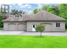 Opportunity Knocks! This Beautiful Custom Home Is Nestled On A Private 1.98 Acre Lot With Over 300 Ft Of Frontage Surrounded By Picturesque Mature Trees. A great opportunity to own a bungaloft with a fully finished basement that is over 5,000 sq ft on two levels and over 7,500 square feet across three levels. This home is designed with high ceilings, 8-foot doors, hardwood floors throughout. Undergone renovations, including new stucco, newer windows, all bathrooms have new custom cabinetry and a sprinkler system for easy yard maintenance. Stepping inside, the open concept main level is filled with natural light through high ceiling picture windows in the living and dining areas. Combined with the large chefs dream kitchen designed with ample countertop space, cabinetry and stainless steel appliances perfect for hosting and gatherings. The primary bedroom is conveniently situated on the main floor with built-in closets and a spa-like 5-pc ensuite with heated floors, a jetted soaker tub, heated towel rack, frameless glass shower and double sink. Upstairs, features a grand hallway with sitting area, large loft and additional spacious bedrooms. The mudroom / laundry room has custom built cabinetry, pull-out drawers / closet organizers and a laundry shoot. The heated garage comfortably accommodates 6 cars, with potential to fit more with lifts, features epoxy floors, water access, and service stairs to the basement. Walk downstairs into a large rec room on raised broadloom flooring and pot lights. Enjoy your own infrared sauna and a spa-like bathroom for relaxation and luxurious touch. The huge basement makes space for a gym with mounted TV, a movie room with Bose Speakers, projector and large wall screen, and a stunning custom built bar with a wet sink, bar fridge, cabinetry, large wine racks & 5 bar stools ideal for recreation. A truly special property with potential to further customize. Do not miss out on this rare opportunity! (id:61594)