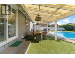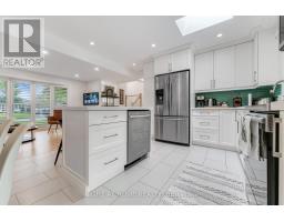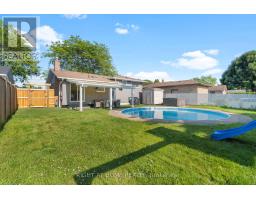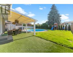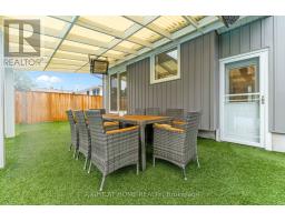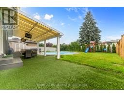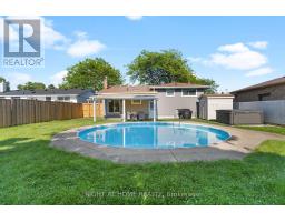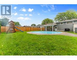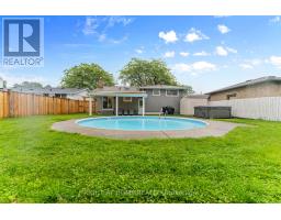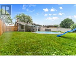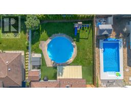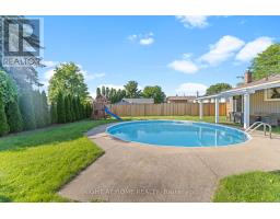 Welcome to this beautifully updated and thoughtfully expanded home, where modern upgrades meet functional design. The bright and welcoming front entry features a custom storage bench and coat closet, leading into a sunlit living room with gleaming maple hardwood floors. Durable tile flooring flows through to the custom-designed kitchen, showcasing ceiling-height cabinetry with crown moulding, quartz countertops, tile backsplash, and a large center island with built-in dishwasher and additional storage. A skylight fills the space with natural light, and sliding glass doors open to the backyard oasis. Upstairs, you'll find a stylish 4-piece bathroom with tile surround and a spacious vanity, servicing three bedrooms. Two offer generous closet space, while the primary bedroom impresses with its double windows and dual closets. Oak floors and sleek glass railings enhance the upper levels aesthetic. The lower level has been reimagined with an expanded 3-piece bath featuring tiled walls and glass shower doors, alongside a large recreation room ideal for entertaining or relaxing. The fourth level offers even more finished space, including a dedicated office nook, abundant storage, and a laundry/utility room with new vinyl flooring. Outside, the backyard has been transformed into a private retreat with new landscaping, an in-ground pool with new liner and heater, a hot tub, covered patio with overhead heaters, and all-new fencing (id:61594)