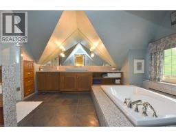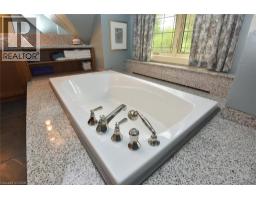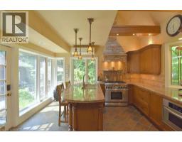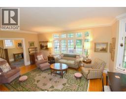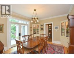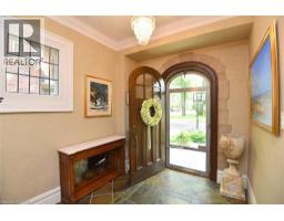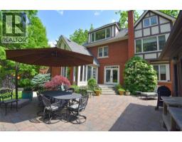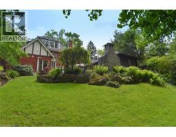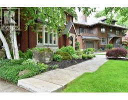 Welcome to this exquisite 2.5 storey Tudorhome, nestled on a beautiful landscaped Ravine lot in the heart of Westdale-one of Hamilton's most coveted and historic neighborhoods. This elegant 4-bedroom/4-bathroom residence beautifully blends preserved architectural charm with tasteful modern enhancements. Professional landscaped gardens featuring a custom outdoor fireplace/pizza oven & built in fire grill. The inviting living room is equally captivating featuring bay windows with original leaded glass panes and a stunningmarble wood burning fireplace- a timeless focal point ideal for cozy evenings. The formal dining room exudes character with original built-in corner cabinets and French doors leading to a serene outdoor setting. Just off dining room is a bright, window-lined family room flooded with natural light, it provides a cozy yet open space perfect for casual living. Step into the heart of the home, an oak kitchen filled with natural light from overhead skylights, upgraded lighting, slate flooring and a professional 6-burner dual gas range. Second floor you will find three generous bedrooms and a 3piece bathroom. It also boast's a private office/media room with built in cabinets, in floor heating and views overlooking the gardens. Third floor primary suite provides an elevated retreat nestled in the tree tops-offering ultimate privacy and picturesque views. Ensuite with sunken tub/and walk in glass shower. The central staircase showcase's stained glass windows, preserving the soul of this century home. Downstairs a fully finished lower level includes wine cellar with a secondary family/media room, a two-piece bath and kitchenettearea- ideal for entertaining and wine tastings. This one-of-kind is steps away from trails, schools, McMaster University, easy access to public transit & #403 , walk to boutique shops, Movie Theatre of Westdale Village. Schedule your private viewing today to experience the unparalleled charm of this stunning home. (id:61594)