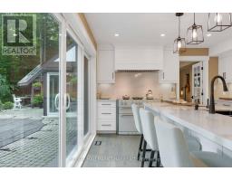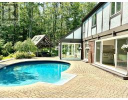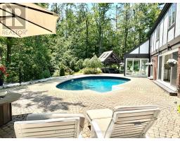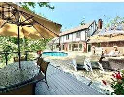 This stately English Tudor manor, set on 2.2 acres of land, beautifully positioned on a hill providing breathtaking views from every window creating exceptional privacy, located right in the middle of the coveted Midhurst area. This exquisite home boasts over 5000 sq ft of finished living space, with 5 spacious bedrooms and 5 bathrooms. The fully renovated kitchen is a chef's dream, featuring top-of-the-line JennAir built-in appliances, a trend-setting AGA Mercury Oven range, and classic Cambria Quartz countertops, this kitchen is designed for both functionality and style. The generous family-size island invites gatherings, the floor to ceiling glass doors open seamlessly to the pool-side patio, perfect for summer entertaining. New hardwood flooring throughout. The gracious dining room, complete with pocket doors, sets the stage for memorable meals, while the stone wood-burning fireplace adds warmth and character. The grand living room with a natural stone gas fireplace, features two sets of French doors that walkout to the backyard heated glass sunroom. The inviting foyer welcomes you with heated floors, a convenient 2-piece bath, and a walk-in coat closet. The principal bedroom features 4-piece ensuite with heated floors and two large closets. One large bedroom offers direct access to a massive loft with a separate entrance and a full bath, presenting an ideal opportunity for in-law suite or guest accommodation.The oversized 3-car heated garage is equipped with a full man cave setup, while a separate detached heated outbuilding serves as a versatile storage space/garage/workshop. The exterior boasts a heated semi-circular uni-stone driveway, in-ground saltwater pool, outdoor shower, fire pit, a cantilevered deck over the ravine and Gazebo covered Hot Tub. **EXTRAS - too many to list here** A full list of Features & Mechanical upgrades is attached to listing. (id:61594)