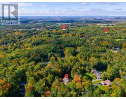 Discover timeless elegance in this stunning English Tudor estate, perched on a private 2.2 acre lot in prestigious Midhurst. Thoughtfully positioned atop a hill, this 5-bedroom, 5-bathroom residence offers over 5,000 sq ft of luxurious living space with sweeping views from every window and unmatched privacy at every turn.Step into the heart of the home - a brand new chef's kitchen that seamlessly blends high design with premium function. Featuring top-of-the-line JennAir built-ins, a striking AGA Mercury range, Cambria quartz counters, and an oversized island perfect for hosting, all flowing into a sunlit dining area and a walkout to the poolside patio.Entertain in every season with a spacious living room, complete with gas fireplace and walkouts to a heated glass sunroom, or retreat to the gracious formal dining room with wood-burning fireplace. The welcoming foyer features heated floors, a 2-piece bath, and walk-in coat closet.Upstairs, the primary suite offers a peaceful escape with heated floors, two large closets, and a spa-style ensuite. A unique bedroom-loft combo with separate entrance, gas stove, and full bath makes for an ideal in-law suite or guest retreat.Outside is where the lifestyle truly shines: in-ground saltwater pool, hot tub under a gazebo, outdoor shower, firepit, and even a cantilevered deck overlooking the ravine. The heated 3-car garage is a dream workshop or man cave, while a separate detached heated outbuilding offers additional flexibility.Ask for the full list of upgrades and features - this home offers far more than meets the eye. (id:61594)