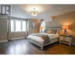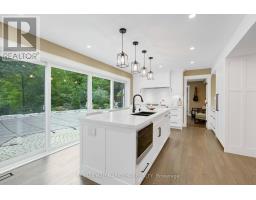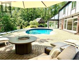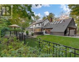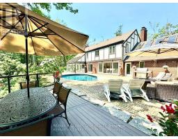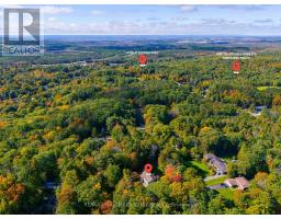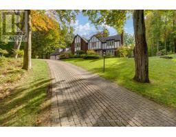 Discover timeless elegance in this stunning English Tudor estate, perched on a private 2.2 acre lot inprestigious Midhurst. Thoughtfully positioned atop a hill, this 5-bedroom, 5-bathroom residence offers over5,000 sq ft of luxurious living space with sweeping views from every window and unmatched privacy atevery turn.Step into the heart of the home - a brand new chef's kitchen that seamlessly blends high designwith premium function. Featuring top-of-the-line JennAir built-ins, a striking AGA Mercury range, Cambriaquartz counters, and an oversized island perfect for hosting, all flowing into a sunlit dining area and awalkout to the poolside patio.Entertain in every season with a spacious living room, complete with gasfireplace and walkouts to a heated glass sunroom, or retreat to the gracious formal dining room with woodburning fireplace. The welcoming foyer features heated floors, a 2-piece bath, and walk-in coatcloset.Upstairs, the primary suite offers a peaceful escape with heated floors, two large closets, and a spastyle ensuite. A unique bedroom-loft combo with separate entrance, gas stove, and full bath makes for anideal in-law suite or guest retreat.Outside is where the lifestyle truly shines: in-ground saltwater pool, hottub under a gazebo, outdoor shower, firepit, and even a cantilevered deck overlooking the ravine. Theheated 3-car garage is a dream workshop or man cave, while a separate detached heated outbuilding offersadditional flexibility.Ask for the full list of upgrades and features - this home offers far more than meets theeye. (id:61594)