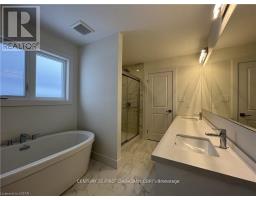 Welcome to 27 Triebner Street, a modern 4-bedroom, 3.5-bathroom home in the desirable Buckingham Estates community of Exeter. Built in 2022, this property offers over 2,200 sq ft of thoughtfully designed living space with additional potential in the unfinished lower level. The double-wide driveway, 2-car garage, and covered front porch create a welcoming first impression. Inside, the grand foyer with cathedral ceiling leads into a bright, open-concept main floor. The family room flows seamlessly into the stylish kitchen featuring stainless steel appliances, a walk-in pantry, and a large island with breakfast bar -- perfect for entertaining and family gatherings. Upstairs, the primary suite is complete with a walk-in closet and spa-like 5-piece ensuite. Three additional bedrooms include two connected by a Jack & Jill bathroom and another with its own private ensuite, offering an ideal layout for families. Additional highlights include main-floor laundry, 9-foot ceilings throughout, and an unfinished basement offering ample storage or the chance to create more living space. Located just 20 minutes from Grand Bend and 30 minutes to London, with nearby parks, schools, trails, and golf courses, this is an excellent opportunity to enjoy modern family living in a vibrant community. (id:61594)