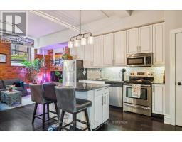 $551.46 MonthlyCharming loft-style condo in the heart of Hamilton, set within a beautifully converted schoolhouse dating back to 1894 and rich in architectural character. This spacious open-concept one bedroom, one bathroom offers an ideal blend of historic charm and modern updates. Featuring soaring 10' ceilings, large windows that flood the space with natural light, and glazed ceramic exposed brick accents, this carpet-free unit exudes warmth and style. The designer kitchen is complete with a centre island, granite countertops and stainless steel appliances which flows seamlessly into the living area. A versatile additional flex space offers the opportunity for a home office, den, library or separate dining area. Additional highlights include in-suite laundry, a renovated four-piece bathroom and hardwood flooring throughout. Perfect for professionals, first-time buyers, or downsizers. Conveniently located just minutes from the city centre with easy access to highways, transit, and a wide range of amenities. Don't miss it! (id:61594)