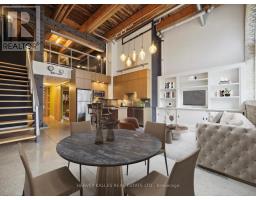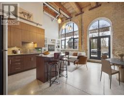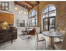 Unit 110 at 363 Sorauren Avenue, better known as Robert Watson Lofts, is truly a dramatic space, in the heart of Roncesvalles. Spanning two stories, this striking loft is defined by its soaring 17-foot ceilings on the main floor and an expansive wall of windows that drench the unit in natural light. The open main living area feels both spacious and intimate, blending modern design with the character of its exposed brick, steel accents and wood beams. Step outside to your own private terrace, a seamless extension of the living space, perfect for morning coffee, evening cocktails, and dining under the stars. The floating staircase designed with steel and wood, carries to the second level where the primary bedroom, with a fabulous spa like bathroom, overlooks the living space below. A versatile room that can serve not only as a serene bedroom, but an inspiring home office, or a creative studio. With its sense of volume, light, and connection to the outdoors, this home captures the essence of loft living while remaining warm, livable, and uniquely yours. Beyond the indoors, Roncesvalles is a neighbourhood humming with cafés, bakeries, and boutiques that give the community its unmistakable charm. Stroll to Sorauren Park, where weekend farmers markets, yoga on the lawn, and casual neighbourhood gatherings create an easy sense of connection. In addition to the one underground parking spot included, access to TTC streetcar and UP Transit, make commutes a breeze. *By Appt Only, No Open Houses* (id:61594)
