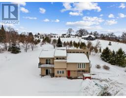 Set on just over two acres, only a short distance from Rice Lake, this spacious family home offers a distinctive layout and breathtaking panoramic views. Designed to embrace light, space, and the surrounding landscape, it delivers the perfect balance of comfort and country charm. The main living area features an open-concept kitchen and dining room highlighted by vaulted ceilings and upper windows that flood the space with natural light. Walkouts lead to an expansive deck that extends the living area outdoors, creating an ideal setting for entertaining and al fresco dining. The kitchen is well-appointed with ample cupboard space, a large island with a breakfast bar, matching appliances, and a wall-mounted oven. A few steps down brings you to the sunken living room, where high ceilings and oversized windows showcase the scenery and fill the room with light. A cozy window reading nook with exposed wood beam adds warmth and character. The main level also offers a generous primary suite with vaulted ceiling and walkout to a private deck. Two additional bedrooms, one featuring a charming loft space, and a full bathroom with walk-in shower enclosure and separate tub. The lower level includes a spacious family and games room with walkouts, a stove-style fireplace, guest bathroom, and laundry area, making it ideal for gatherings or extended family stays. Outside, enjoy a spacious back deck and expansive green space on a beautifully tree-lined property. With close proximity to Rice Lake and the Northumberland Forest trails, this home delivers the peaceful country escape you've been searching for. (id:61594)