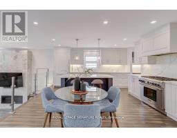 Welcome to 110 Evans Avenue A Rare Custom-Built Gem in the Heart of Mimico Set on an oversized 40' 120' lot, this stunning contemporary residence offers a perfect balance of modern design, thoughtful layout, and premium finishes. The split-level main floor features soaring 13-foot ceilings and a dramatic open-to-above living room that floods the space with natural light. A chef-inspired kitchen anchors the home, complete with Thermador appliances, a spacious eat-in area, and a walk-through butlers pantry with wet bar connecting directly to the formal dining room ideal for seamless entertaining. Upstairs, you'll find four generously sized bedrooms, a secondary laundry for added convenience, and a luxurious primary suite with a walk-through closet and spa-like ensuite. The fully finished basement enhances the homes functionality with a large recreation room, full bath, and fifth bedroom perfect for guests, in-laws, or a private home office. Enjoy balanced year-round comfort with dual HVAC systems, and take advantage of the oversized 2.5-car built-in garage with private drive. Step outside to a covered backyard verandah and expansive green space, ideal for outdoor dining, play, and entertaining. Located just steps from the Mimico GO Station, parks, schools, lakefront trails, shops, and local restaurants, this home offers unbeatable access to downtown Toronto and beyond. Move-in ready and complete with a one-year home warranty and pre-inspection report, this is a rare opportunity to live beautifully in one of Toronto's most vibrant lakefront communities. Live Beautifully. Live Mimico. Live 110 Evans Avenue. (id:61594)