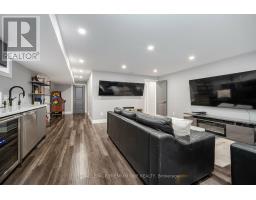 Welcome to this stunning, fully upgraded 3-bedroom, 4-bathroom end-unit townhome, perfectly situated on a premium pie-shaped lot with no rear neighbours! This turn-key residence showcases exceptional craftsmanship and thoughtful upgrades throughout. The functional open-concept layout features 9 ft smooth ceilings on the main floor, hardwood flooring, and pot lights that create a bright, elegant ambiance. The modern kitchen is a chefs dream, complete with stainless steel appliances, extended upgraded cabinetry, quartz countertops, and a centre island ideal for cooking, dining, and entertaining. Elegant oak stairs with wrought iron pickets and custom railings lead to the upper level, where you'll find a spacious primary suite featuring a 5-piece ensuite and a large walk-in closet. The additional bedrooms are generously sized, each offering large windows and ample closet space. A second-floor laundry room adds convenience for busy family living. The finished basement offers additional living space, perfect for entertaining. It includes an open-concept recreation area, a wet bar with Quartz Countertops, Custom Vanity and a beverage fridge, With a 3-piece bathroom with heated floors. Step outside to your private backyard oasis, backing onto open space ideal for relaxing or entertaining guests. Enjoy summer BBQs under the stars with features like a hot tub, outdoor TV, flower beds, privacy trees, and a lush hydrangea garden. The exterior is beautifully finished with custom interlocking and professional landscaping. Located in a family-friendly community, just minutes from schools, parks, recreation centres, shopping, and transit, this home offers the perfect blend of luxury, comfort, and convenience. This is the one you've been waiting for move in and start making memories! (id:61594)