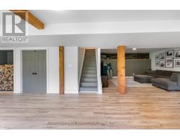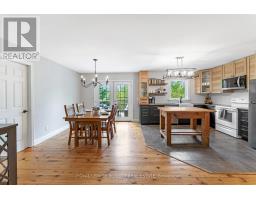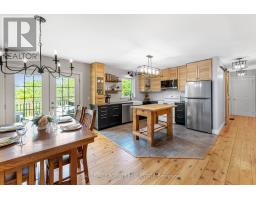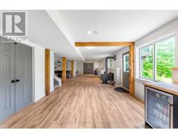 Lovely bungalow with 4 bedroom + den family owned with finished lower level walkout and 3 full bathrooms on a 4.2 acre lot with a creek less than 15 minutes to downtown Bracebridge and within walking distance of the Muskoka River. Gorgeous contemporary style country kitchen with island, pantry, and dining area with expansive westerly deck with stunning forested views. Bathroom featuring custom maple soft-close dovetail cabinetry & Calcutta gold quartz countertops, and main floor laundry. Beautiful big size bedroom with ensuite. Oversized foyer, secondary front deck, ample storage. Well appointed lower level includes a large family/rec room with woodstove, play area, media space, and studio/den, 3rd bathroom, bar area , workshop, ample space for home office/gymnasium, additional storage and workshop. The property has mature apple trees, sugar maples for syrup and wild berries for summer snacking, close to snowmobile trails. Ample usable land including terrific fire pit area. It is cozy and features all of the savvy shopper's wish list criteria, forced air propane furnace, ease of year round municipal road access. Chance to live with complete privacy and no neighbours in view. Gorgeous creek flows through the property descending to the Muskoka River. (id:61594)