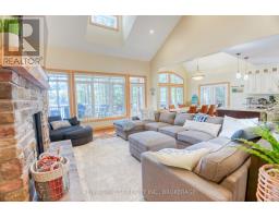 Lakefront Living on Kennebec Lake Arden, Ontario. Welcome to this stunning, quality-built lakefront home on beautiful Kennebec Lake in Frontenac County. Built in 2013, this thoughtfully designed residence offers the perfect combination of comfort, elegance, and year-round waterfront living. The open-concept great room is the heart of the home, featuring vaulted ceilings, a propane fireplace, and expansive southern-facing windows that flood the space with natural light and provide breathtaking lake views. The high-end kitchen is ideal for both everyday living and entertaining, flowing seamlessly onto a spacious lakeside deck and a charming three-season sunroom. The main floor boasts two bedrooms and 2 bathrooms, including a well-appointed primary suite. The fully finished lower level provides even more space to gather with family and friends, offering a walkout to the lake, a large recreation room with a wood-burning fireplace, a games area, a complete wet bar, two additional bedrooms, and a full bathroom. Step outside to enjoy lakeside living at its finest: a finished patio with an outdoor fire pit, easy access to a swimmable waterfront with sandy and rock bottom, and a private dock perfect for diving in or mooring your boat. An attached two-car garage, central heating and air conditioning, and a municipally maintained road ensure convenience and peace of mind year-round. This property is more than a home its a lifestyle. Whether you're looking for a family retreat, a place to entertain, or a permanent residence on the water, this Kennebec Lake gem offers it all. (id:61594)