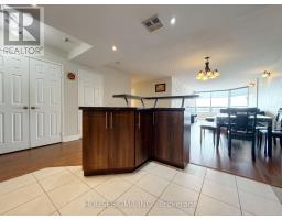Spectacularly Spacious 2-Bedroom + Den Condo in One of Brampton's Most Desirable Locations. Set amidst meticulously maintained grounds and lush gardens, this resort-style residence offers an exceptional lifestyle with indoor and outdoor pools, gym, squash & racquet court, tennis court, games room, party room, billiards room, and 24-hour gated security. Enjoy the rare privilege of backing onto conservation land with Norton Place Lake and scenic picnic areas, truly making every day feel like a vacation. This fully renovated suite features a modern open-concept living and dining area highlighted by pot lights, accent stone wall, wall sconces, and an elegant dining chandelier. The sun-filled solarium boasts light-tone porcelain flooring and floor-to-ceiling windows, perfect for relaxing or working from home. The upgraded kitchen showcases granite countertops, ceramic backsplash, ample dark-stained cabinetry, an island with a breakfast bar, an accent stone façade, an undermount sink, chimney-style exhaust, and stainless-steel appliances. Two completely renovated bathrooms offer neutral porcelain tiles, dark-stained vanities, a luxurious soaker tub, and a walk-in shower. Finished with upgraded dark-tone laminate flooring throughout and two underground garage parking spaces, this home delivers comfort, elegance, and unmatched surroundings (id:61594)