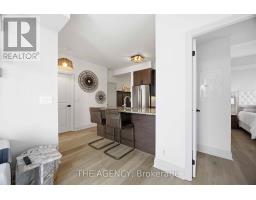 This beautifully updated suite is located in one of Etobicoke's most rapidly evolving communities. Offering strong long-term growth potential and an unbeatable lifestyle for young professionals and commuters. Featuring updated flooring, smooth ceilings, fresh paint throughout, and modern light fixtures, this unit is completely move-in ready. The fantastic layout is both functional and inviting, highlighted by a custom built-in dining area with bench seating for 8, perfect for hosting. Enjoy tranquil views overlooking Lake Ontario, with a park just steps away, ideal for dog lovers and outdoor enthusiasts. The desirable corner unit with southwest exposure fills the space with natural light and offers stunning evening sunsets. Designed with convenience in mind, this location is ideal for commuters with seamless access to transit and highways. TTC is right at your doorstep, and you're just minutes from the Gardiner Expressway for an easy downtown commute. Plus, Toronto Pearson Airport is only 10 km away, perfect for frequent travelers. Walk to groceries, restaurants, and entertainment, all while being surrounded by green space in a fast-growing, high-demand neighborhood. A perfect blend of style, comfort, and convenience. This is urban living at its best. Residents enjoy exceptional building amenities, including an indoor pool, sauna, hot tub, fully equipped gym, rooftop terrace with BBQs, party room, guest suites, visitor parking, pet wash, car wash station, and 24-hour concierge. (id:61594)
