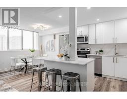 Welcome to this stunning, fully renovated 3-bedroom, 1-bathroom condo offering 1200 sqft of modern living space. Situated in a highly sought-after building near Square One Mall, this condo was completely transformed in November 2024, boasting high-end finishes, exceptional amenities, and a prime location.The kitchen is a true showstopper, featuring quartz tile backsplash, quartz countertops, brand-new custom cabinetry, and top-of-the-line appliances. A spacious center island serves as a perfect gathering spot for meals or entertaining. The attention to detail is carried throughout the home, with brand-new light fixtures illuminating every room, fresh paint creating a bright and inviting atmosphere, and sleek new laminate flooring. Bathroom has been fully upgraded with modern finishes w new bathtub. Each of the three bedrooms is generously sized, featuring brand-new mirrored closets with ample storage. In-suite laundry area is equipped with a brand-new washer and dryer. This condo also includes owned underground parking, located close for secure and convenient access. Condo fees cover heat, hydro, water, air conditioning, common elements, parking, building insurance, with 24/7 security & concierge services ensuring a worry-free lifestyle. Fully equipped fitness center, indoor pool, sauna & party room. Ample visitor parking for hosting friends & family. Located steps from Square One Mall, Mississaugas best dining, shopping, & entertainment. Proximity to top-rated schools, parks, & community centers, next to 403, 401, and QEW, public transit, and the upcoming Hurontario LRT. (id:61594)
