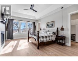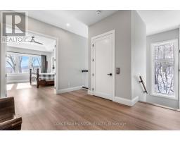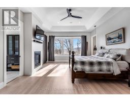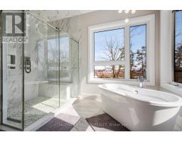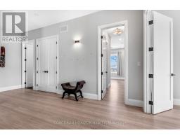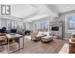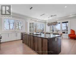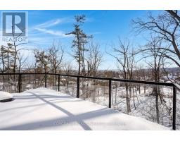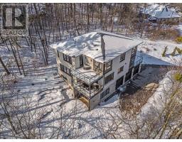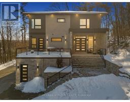 Welcome to 111 Grand Ridge Drive, an extraordinary 4,600 sq ft estate residence set on 3 acres of protected Carolinian forest, offering a rare combination of refined design and natural seclusion just minutes from the downtown core and highway access. This south-facing home is filled with natural light and elevated by 10-foot ceilings on every level, a fully carpet-free interior, and a private elevator providing effortless access throughout. The main level presents an elegant open concept layout designed for both grand entertaining and comfortable daily living. The chef inspired kitchen is a true focal point, featuring a striking granite waterfall island sourced via Latia Brazil, quartz surfaces, premium appliances, an expansive servery, and a generous butler's pantry. A private main floor bedroom with its own ensuite offers ideal accommodations for guests or extended family. Two large decks extend the principal living areas outdoors, creating a seamless connection to the surrounding forest. Upstairs, four spacious bedrooms include a luxurious primary retreat complete with European windows, a substantial walk-in closet, a spa-like ensuite bath, and a private deck overlooking the treed landscape. The fully finished walk-out lower level adds exceptional versatility with an additional bedroom, full bath, and recreation space anchored by an impressive 12-foot sliding door leading to the landscaped grounds. Constructed with attention to quality and performance, this home features full spray foam insulation, 400 amp service with generator rough-in, an owned hot water heater with recirculating pump, owned soft water system, interior sprinkler system, hard-wired interior and exterior speaker system, and soffit lighting on a timer. The approximately 1,000 sq ft triple car garage offers oversized 10 ft wide by 9 ft high doors, EV rough-in, and Wi-Fi enabled openers, ideal for collectors or hobby enthusiasts. (id:61594)