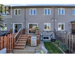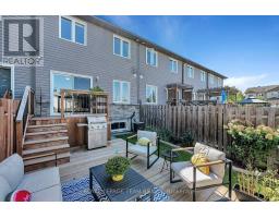 This immaculately kept 3 bedroom, 2 bathroom townhome w/tons of upgrades, built in 2006, is located in a much sought after mature neighborhood with NO DIRECT REAR NEIGHBOR and literally steps to a great shopping mall and Hwy #416 in town. This lovely home offers rounded corner construction throughout. The new patio stone walkway and front porch invite you in to your spacious foyer where you'll find ceramic and gleaming hardwood flooring throughout the main level. The open concept Living Room offers patio doors to your private, fully fenced backyard oasis which boasts a new deck, large patio and perennial gardens for your enjoyment. The bright kitchen has numerous white, shaker style cabinetry, stainless steel appliances, double sinks, and a convenient island with additional, built in drawers. Open to the dining area this open concept main floor is perfect for all your entertaining needs. Upstairs, you'll find the primary bedroom which is huge & boasts picture windows, a large walk-in closet and a cheater entrance to the main 3 piece bath! The second and third bedrooms are generously sized with large windows and closets. The second floor laundry room is sure to please. The lower, professionally finished basement, boasts a large family room with two windows, flat ceilings, pot lights and tons of storage space! Upgrades include: professionally finished basement in 2015, rear roof shingles 2015, rear deck and partial fence 2023, driveway sealed 2024, upstairs bedrooms and bathroom painted 2023, front porch and patio stones 2020, new gas hot water tank rental 2022, Eavestrough 2011, A/C and water softener 2012, both bathrooms upgraded in 2014. This, move in ready townhome includes: Stainless Steel Refrigerator, Stove, Built-in Microwave HoodFan, Dishwasher, Washer, Dryer, All Window Treatments, All Lighting Fixtures, Garage Door Opener & 2 Remotes, Water Softener. Approx. monthly utiities: Gas $39, Hydro $115, Water/Sewage $133, HWT rental $44. ~WELCOME HOME~ (id:61594)
