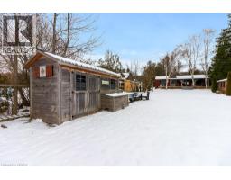 Discover the ultimate four-season waterfront retreat at 111 Wilson Drive, an immaculately maintained and fully renovated property set on the pristine shoreline of Colpoys Bay in Georgian Bluffs. Nestled on a private, flat, tree-lined 70' x 204' lot with breathtaking views of the Niagara Escarpment, this turn-key property offers a sandy walk-out beach, a handcrafted docking system accommodating a 26' boat, multiple watercraft racks, a beach firepit, and a fully equipped Beach House-creating an unmatched setting for swimming, paddling, boating, and family fun. The beautifully updated 1,000 sq ft main home showcases cedar and pine construction, high ceilings, refinished original wood floors, a stunning stone gas fireplace, a high-functioning wood-burning stove, and an open-concept kitchen with custom cabinetry, premium appliances, and a 9'4 island. Thoughtfully upgraded throughout, the home features new windows and doors, insulated steel roofing, municipal water with RO system, hot-water-on-demand, a 2018 septic system, updated electrical and plumbing, fully refinished bathroom, extensive insulation, tile drainage, and a Napoleon natural gas furnace for year-round comfort. Expansive outdoor decking, an 8'x8' deluxe outdoor shower, a designated outdoor cooking deck, an 8-person hot tub, and multiple outbuildings-including a Cabin, a two-level Fort, a Utility Cabin, and the Beach House-enhance the lifestyle experience. Located just minutes from Wiarton, close to golf, trails, beaches, and marinas, this rare offering combines peaceful seclusion with exceptional recreation. A truly turn-key waterfront paradise where memories are made and cherished for generations. (id:61594)