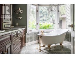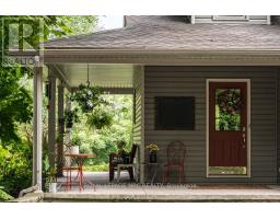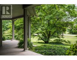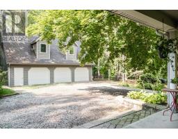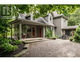 Welcome to this truly exceptional custom-built 2-storey home located in the heart of Fenwick, set on a stunning and private 2.85-acre estate. Designed with character, comfort, and timeless elegance in mind, this one-of-a-kind property offers the perfect blend of luxury and rural tranquility.From the moment you arrive, the charm of this property is undeniable. A wrap-around porch welcomes you in, perfect for relaxing and taking in the peaceful countryside views. Step inside the grand foyer and you will immediately be struck by the rich hardwood floors and timeless design details throughout.This home offers 4 spacious bedrooms and 5 bathrooms, including a luxurious main floor primary suite complete with a 5-piece ensuite featuring a clawfoot tub, separate shower, and a walk-in closet.Enjoy cozy evenings in the main living room, or step into the 3-season sunroom to unwind while overlooking the beautifully landscaped, private backyard. Entertain guests in the formal dining room, or prepare meals in the chef-inspired kitchen with granite countertops and elegant cherry wood cabinetry.Need space to work or escape with a good book? The stately library showcases warm cherry wood built-ins that exude classic sophistication.Upstairs, you will find 3 generously sized bedrooms and 2 additional bathrooms, perfect for family or guests. The partially finished basement offers even more flexibility, with a walk-up entry, additional kitchen, dining and living space, plus 2 more rooms ideal for an office, gym, or in-law suite.Outdoors, the property continues to impress: a detached 3-car garage with loft, a workshop, pole barn, and even a tree house for added charm.Whether you're looking for a tranquil retreat, a place to host and entertain, or room for your family to grow, this extraordinary country estate offers a lifestyle of elegance, space, and serenity. (id:61594)