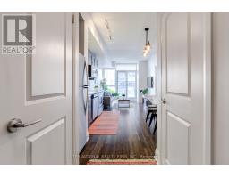 Come home to this Beautiful 1 Bedroom, 2 Bathroom West Facing Condo at Park Towers. (Approximately 560 sqft interior + 105 sqft balcony) The Michelangelo Model Suite, features open concept living, gleaming, dark laminate flooring, cherry-chocolate cabinetry, arctic quartz countertop, upgraded stainless steel appliances, stylish backsplash, undermount sink, a thoughtful layout, generous sized bedroom, floor to ceiling windows, a massive balcony spanning the entire width of the unit for entertaining, and partial park and lake views. World class amenities featuring gorgeous, massive length-swim infinity pool, hot tub, steam bath, sunbathing deck, gym, rooftop BBQ patio, stylish corridors and a welcoming concierge. Walking distance to parks, splashpad, off leash dog park, shopping, Longos, Banks, numerous restaurants and take-out gems. Close to Gardiner and 427, minutes to downtown. Experience the 3D tour and virtually walk through this amazing home. Award winning, architect designed Custom made Live Edge Table included along with 3xCB2 stools, and bench for entertaining friends and family. 2 TVs and Mounts included for your convenience. Custom made, dimmable, rustic chandelier and transmutative bedroom chandelier included for your lighting pleasure. Parking and Locker included. Eat, rest, play and call this your home. (id:61594)